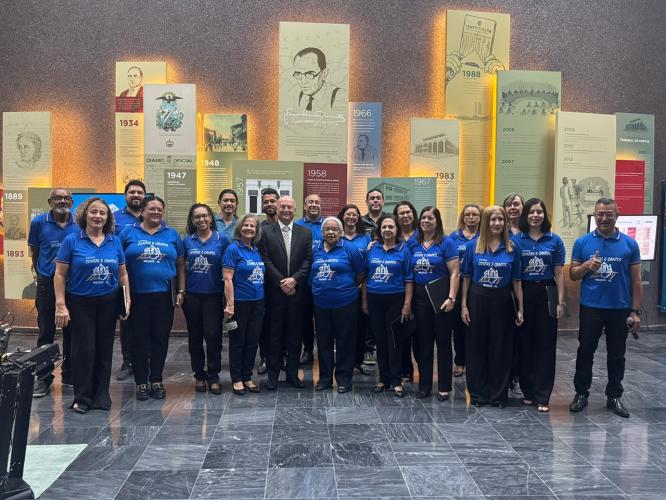A homenagem contou com a apresentação do Coro Contas e Cantos, que preparou um repertório especial para a ocasião, emocionando o público e tornando a celebração ainda mais significativa.